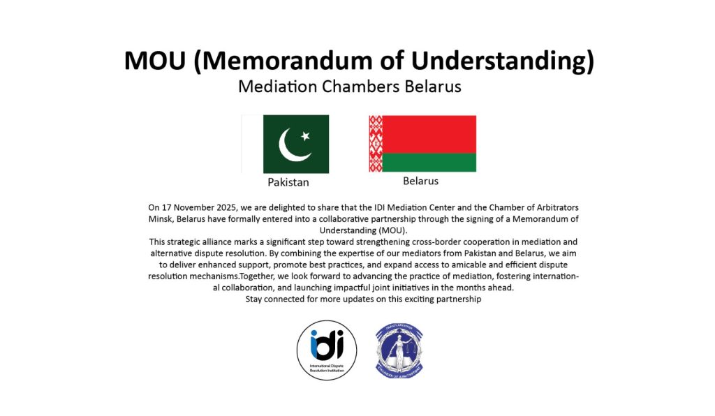 This strategic alliance marks a significant step toward strengthening cross-border cooperation in mediation and alternative dispute resolution. By combining the expertise of our mediators from Pakistan and Belarus, we aim to deliver enhanced support, promote best practices, and expand access to amicable and efficient dispute resolution mechanisms.